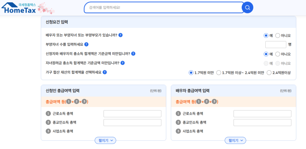 또한 단독가구는 해당되지 않고, 반드시 홑벌이 또는 맞벌이 가구여야 합니다. 여기서 말하는 가구 기준은 세대 단위로 판단되며, 함께 생활하는 가족 구성도 중요한 요소가 됩니다. 자녀장려금은 말 그대로 ‘자녀를 양육하는 가구’를 지원하기 위한 제도이기 때문에 가족 구성 요건도 꼭 확인해야 합니다.